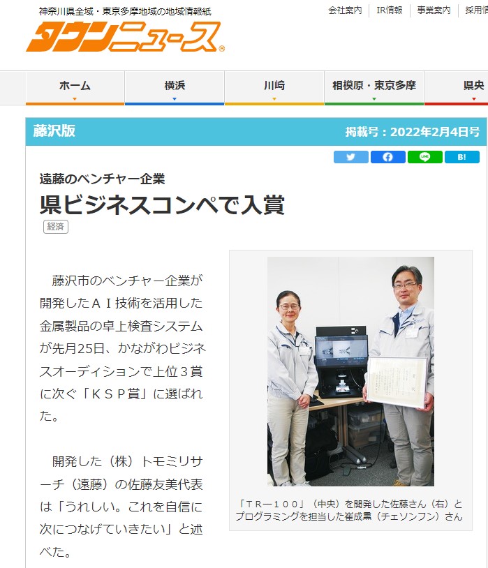 タウンニュース(2月4日)に弊社のメンバーのインタビュー記事が掲載されました。記事は下記のリンクにご覧になれます。 遠藤のベンチャー企業県ビジネスコンペで入賞 https://www.townnews.co.jp/060 […]