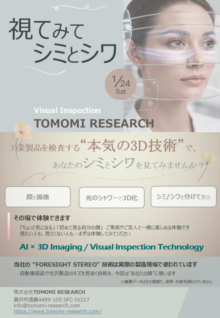 TOMOMI RESEARCHは、2026年1月24日(土)に開催される「神奈川なでしこブランド認定商品 展示・販売会」に出展いたします。 当日は、当社の美容向け可視化技術 FORESIGHT STEREO を展示し、「 […]